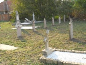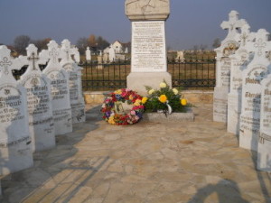 Die noch auf dem Boden liegenden Grabsteine wurden mittlerweile ebenfalls aufgestellt. An Allerheiligen hat Vojin Mitrić an der Gedenkstätte ein Blumengesteck für unsere toten Angehörigen niedergelegt. Er hat uns dazu nachfolgende Bilder übersandt: