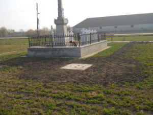 Bei unserer letzten Reise im August 2011 zur Kirchweih nach Weprowatz wurde u. a. besprochen, dass die neugesetzten Bäume und Büsche auf dem Deutschen Friedhof laufend bewässert werden müssen, um anwachsen zu können. In Zusammenarbeit mit der Gemeindeverwaltung hat Vojin Mitrić dieses Anliegen sofort in die Tat umgesetzt. Es wurde eine Wasserleitung bis zu einem Schacht nahe der Gedenkstätte gegraben und verlegt. In dem Schacht liegt ein 50 Meter langer Gartenschlauch, so dass nunmehr alle neu gepflanzten Bäume und Sträucher mit Wasser versorgt werden können.